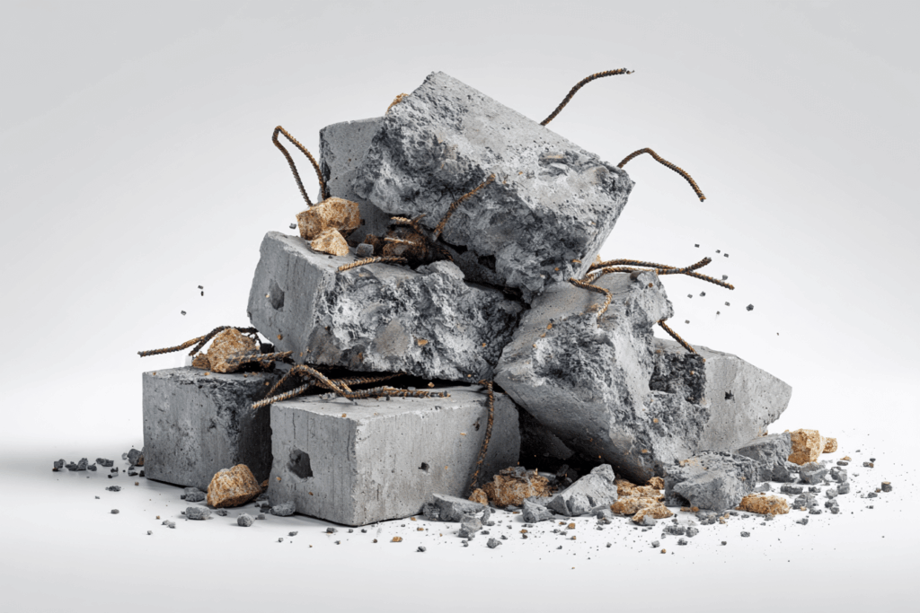 Unarmierter Beton bis max. 60×60×40 cm, frei von umweltgefährdenden Stoffen und ohne Fremdanteile wie Boden, Sand, Schotter, Mörtel. Bei Bewehrung → Kategorie E.